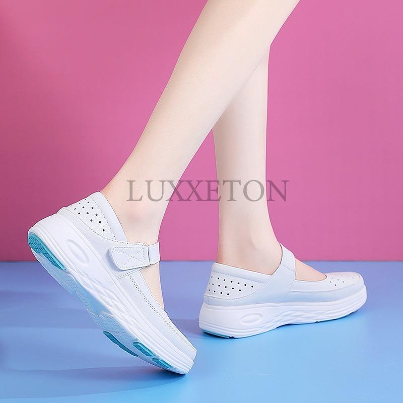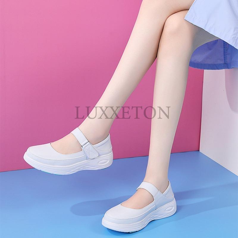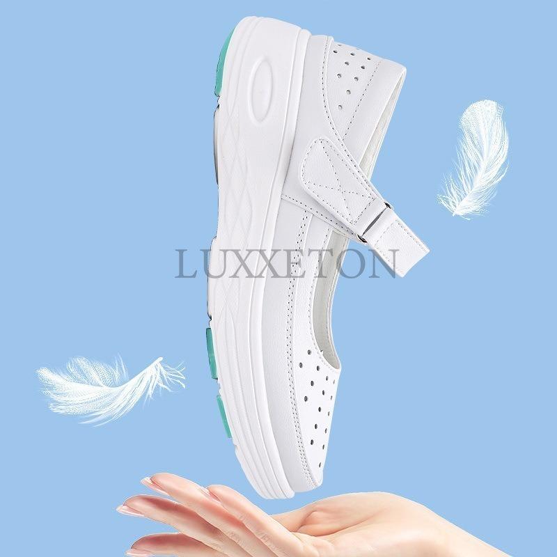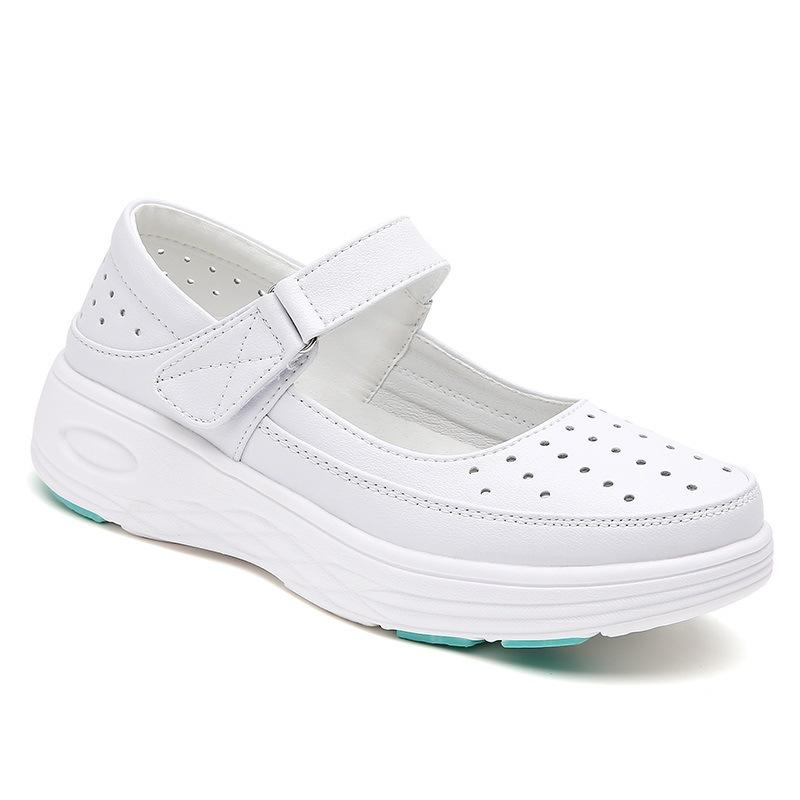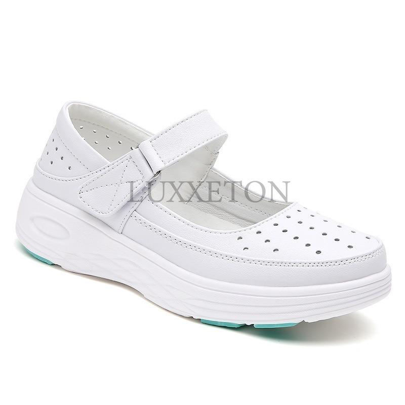 Летняя женская обувь для медсестры из натуральной кожи с мягкой подошвой, повседневная, легкая, удобная, нескользящая, с плоской подошвой