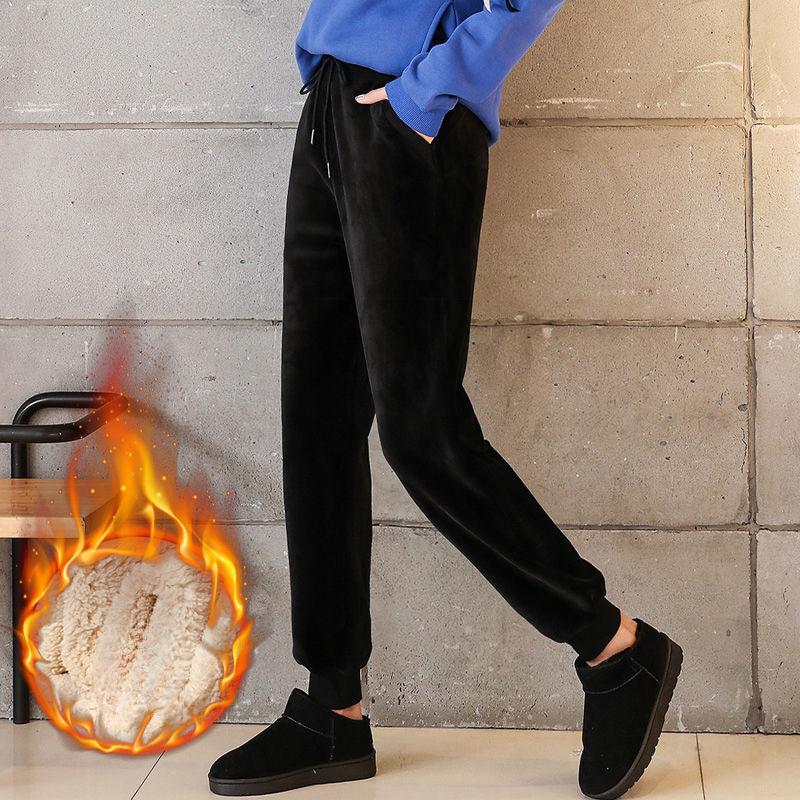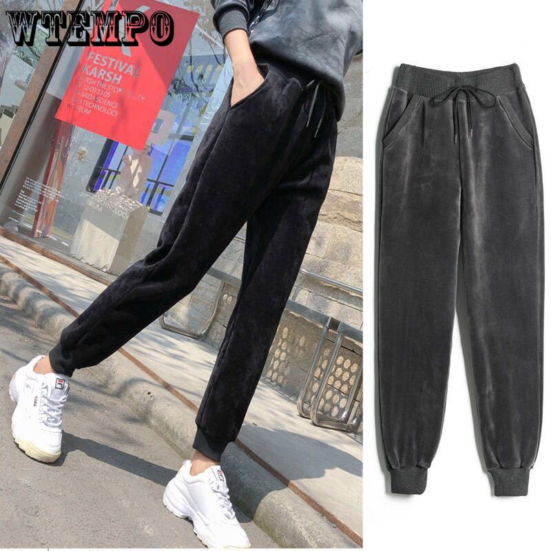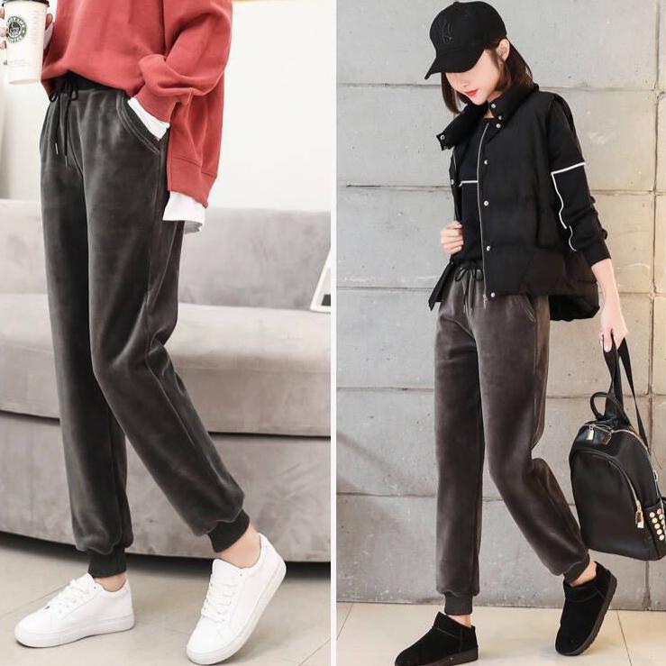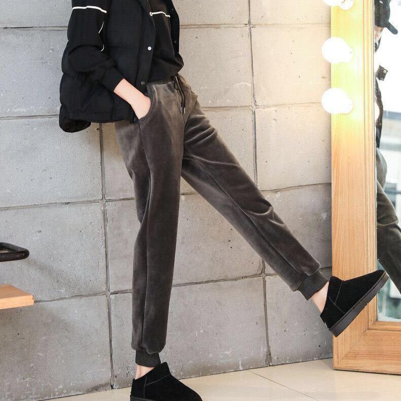 Спортивные брюки женские уличные женские бархатные шаровары повседневные брюки осенне-зимние однотонные повседневные брюки