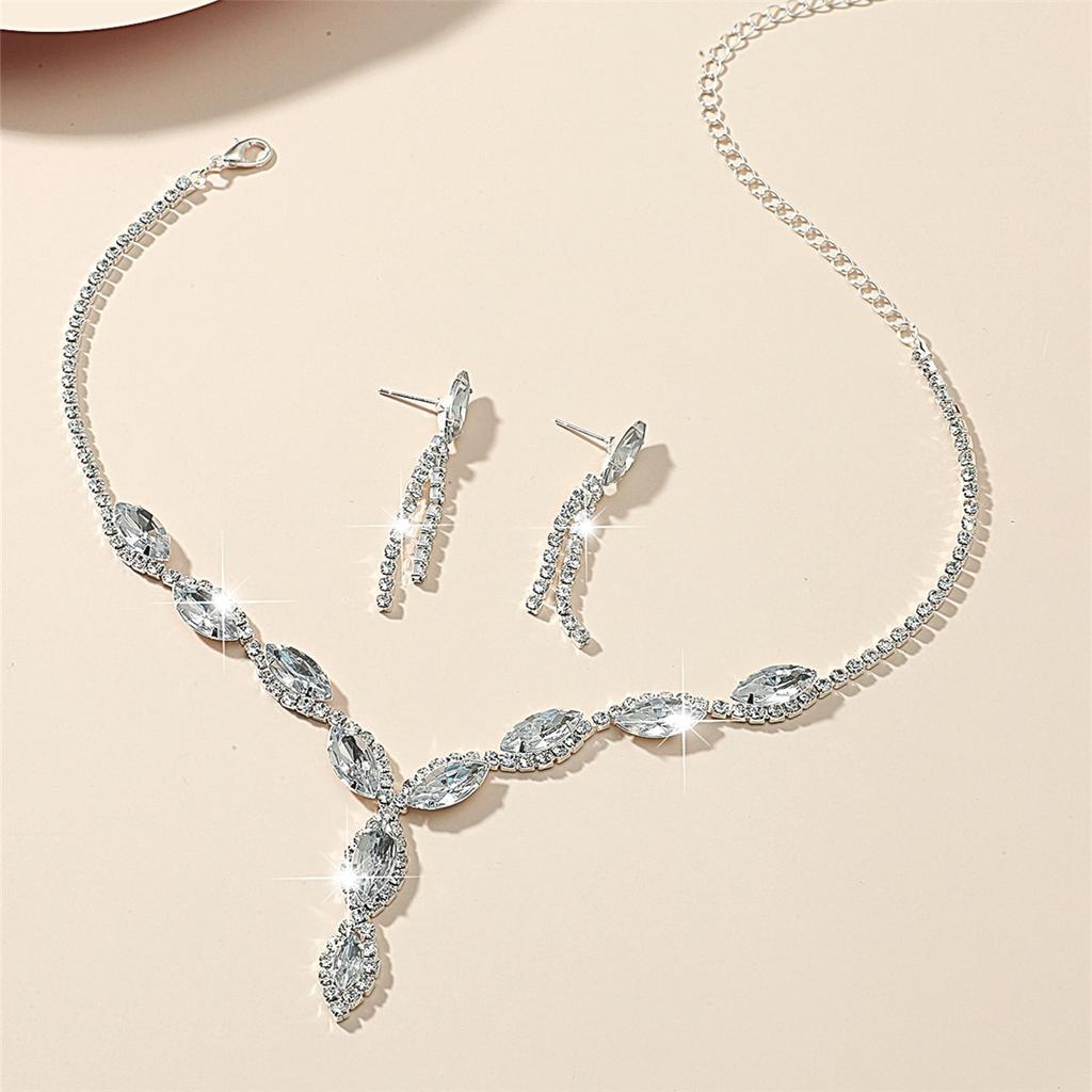 Темперамент мода простые бриллиантовые серьги ожерелье Европа и Соединенные Штаты ветер свадебные модели серьги ожерелье комплект