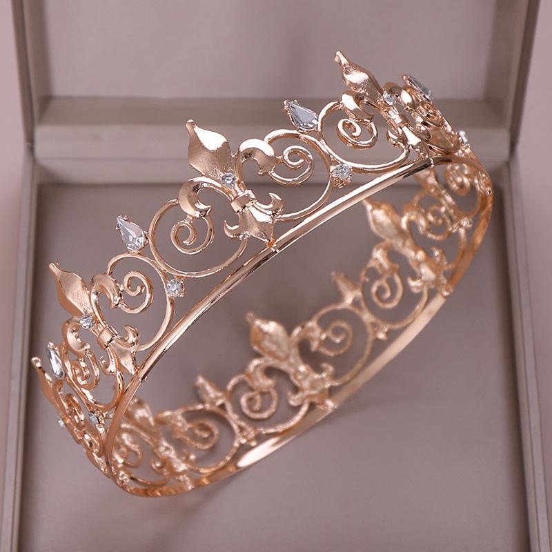 Ailibride Золотая круглая корона короля королевы свадебная тиара невесты головной убор для мужчин вечерние хрустальные украшения для волос свадебные аксессуары для волос