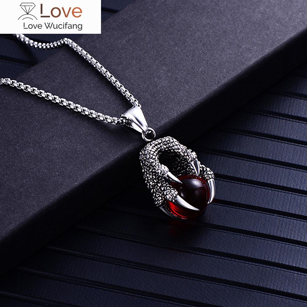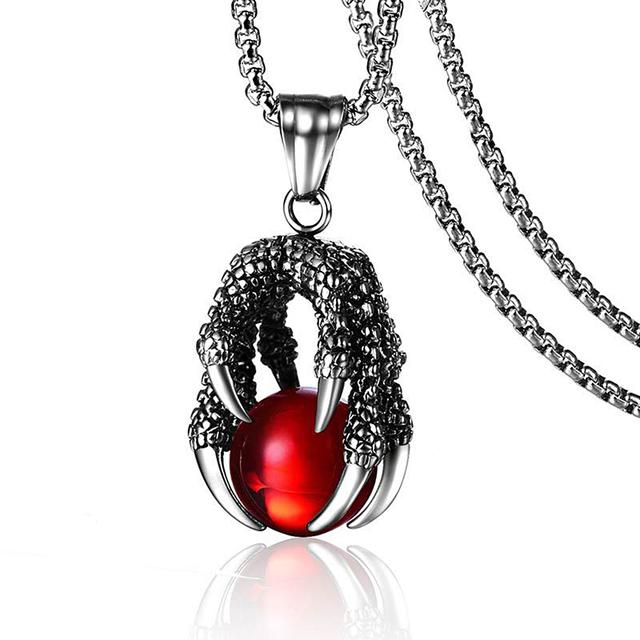 Классическое властное ожерелье из нержавеющей стали с драконьим когтем для мужчин, панк-красное, черное, хрустальное ожерелье с подвеской в виде шара, модные ювелирные изделия