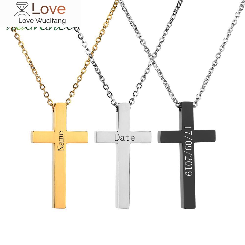 Nextvance индивидуальный крест ожерелье выгравированная дата имя кулон ожерелья из нержавеющей стали простые ювелирные изделия с изображением Иисуса