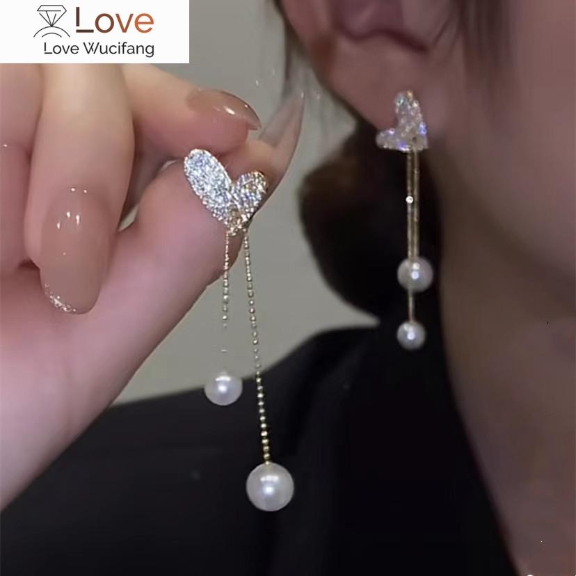Новые длинные серьги-капли с кисточками из циркония Ааа для женщин и девочек, роскошные серьги в форме листьев и сердец, имитация жемчуга, ювелирные украшения-банты, подарки