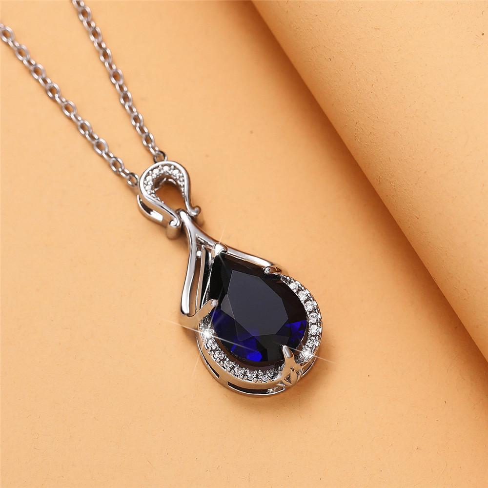 Huitan грушевидной формы синее кубическое цирконие женское ожерелье полное блестящее ледяное помолвочное свадебное украшение на шею серебряный цвет ювелирные изделия