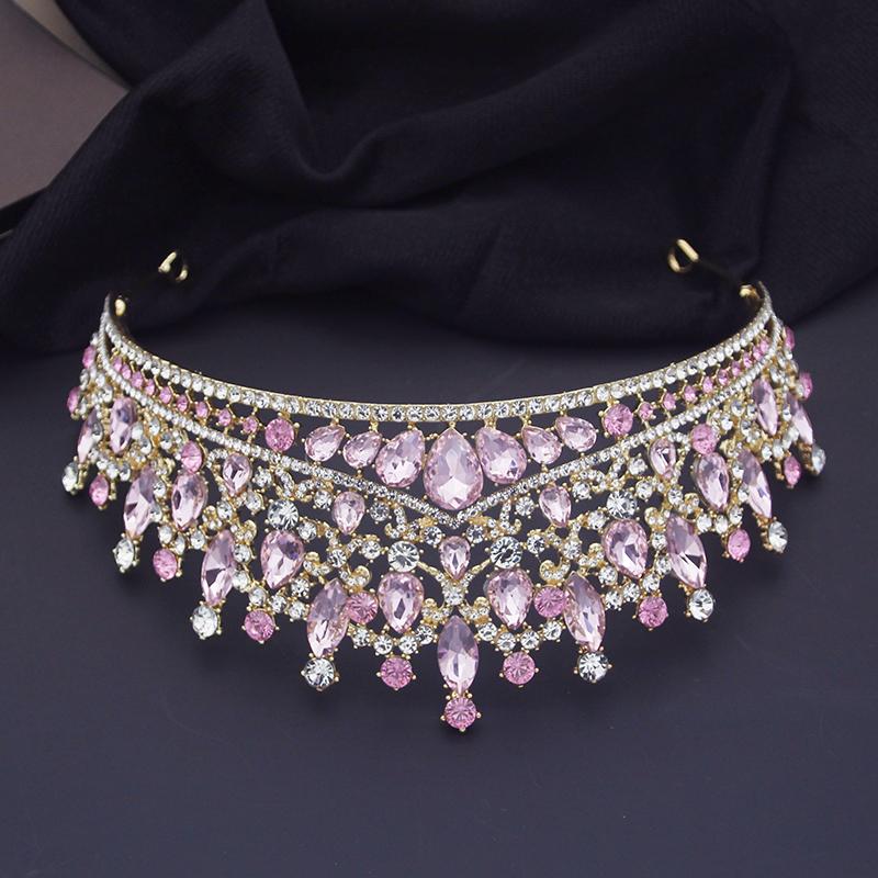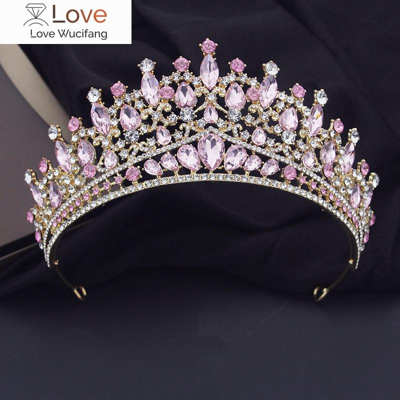 Роскошные розовые хрустальные свадебные короны, королевские диадемы королевы, повязки на голову для девочек, свадебный головной убор для выпускного вечера, диадема для невесты, украшения для волос, аксессуары