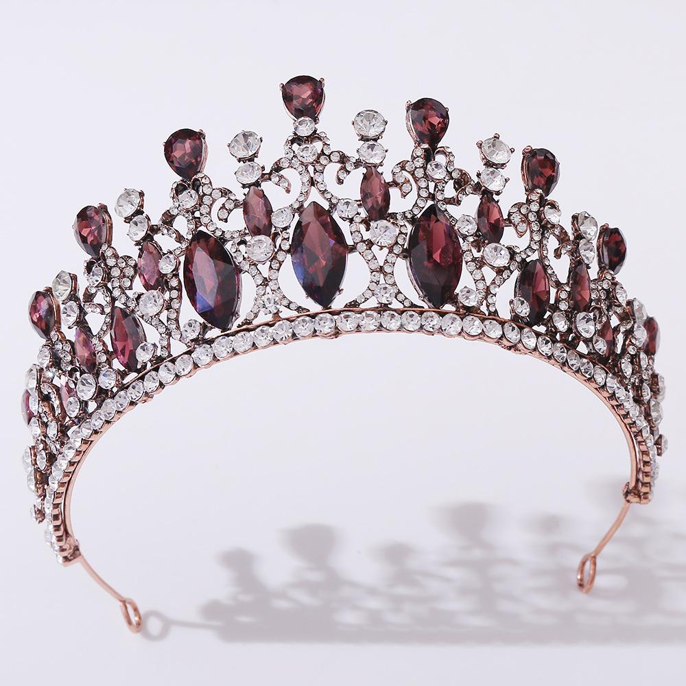 Великолепная бронзовая фиолетовая хрустальная свадебная корона, винтажная свадебная диадема, королевская тиара, корона, головной убор, свадебное платье, украшения для волос