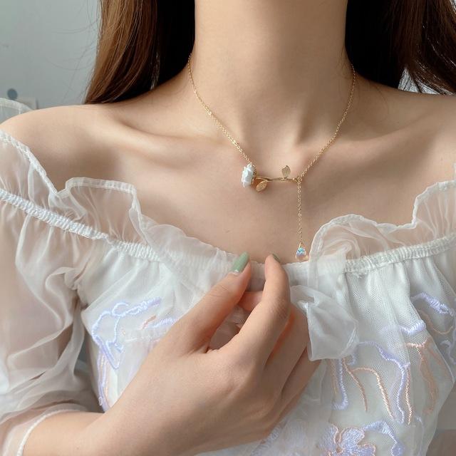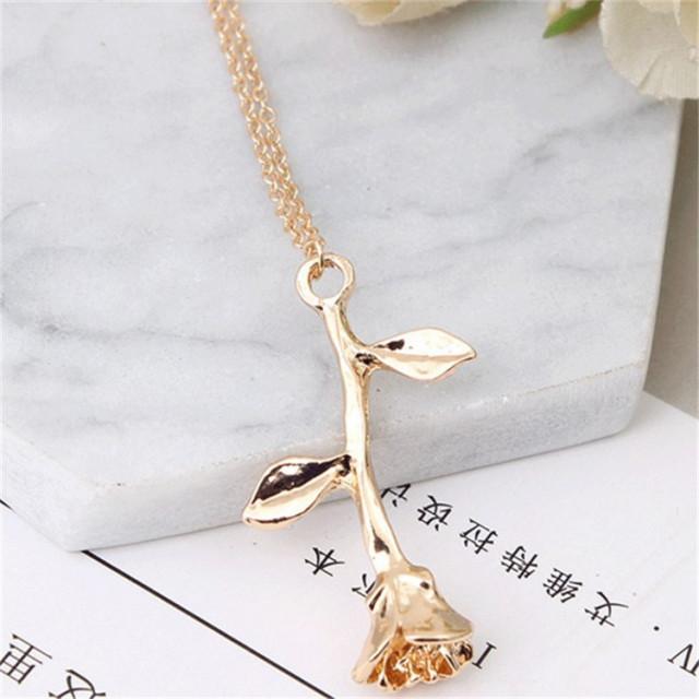 Новое модное винтажное ожерелье с розой, кулон на длинной цепочке, простое ожерелье, осенне-зимние женские украшения на День святого Валентина