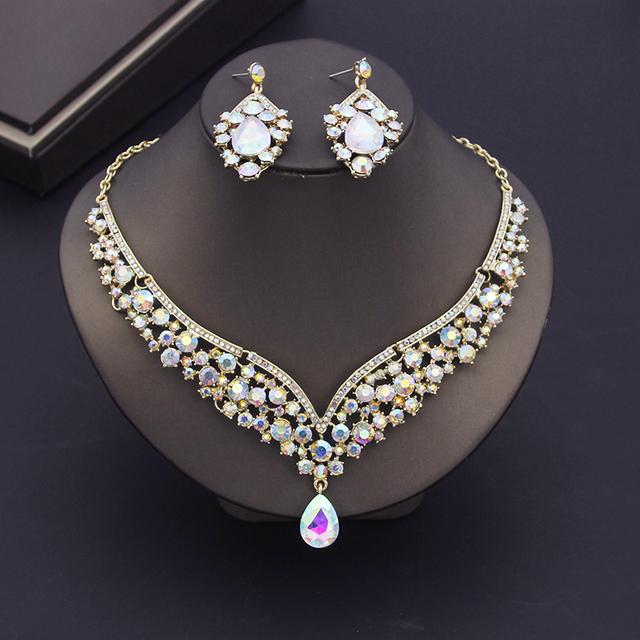 Великолепные розовые хрустальные свадебные комплекты ювелирных изделий для женщин, свадебные короны, серьги, диадемы, ожерелья, комплекты ювелирных изделий для невесты на выпускной в Дубае