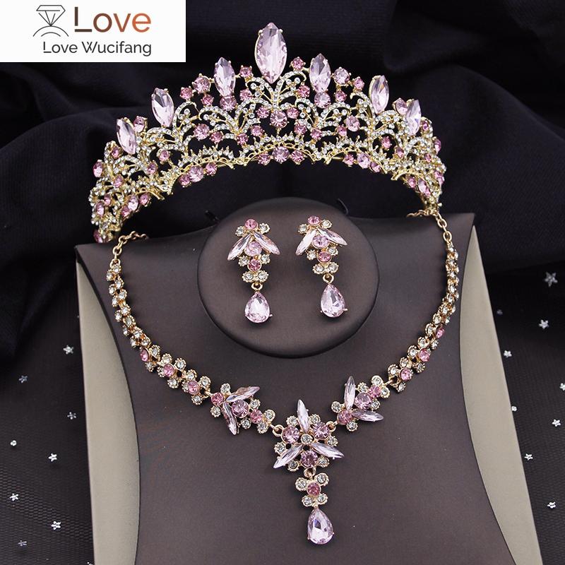 Комплекты свадебных украшений со стразами и кристаллами для женщин, тиара, корона, ожерелье, серьги, выпускной, комплекты свадебных украшений для невесты