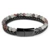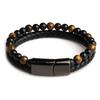 Браслеты из натурального камня, плетеный браслет из натуральной кожи, черная магнитная застежка из нержавеющей стали, браслеты из бисера тигрового глаза, мужские украшения