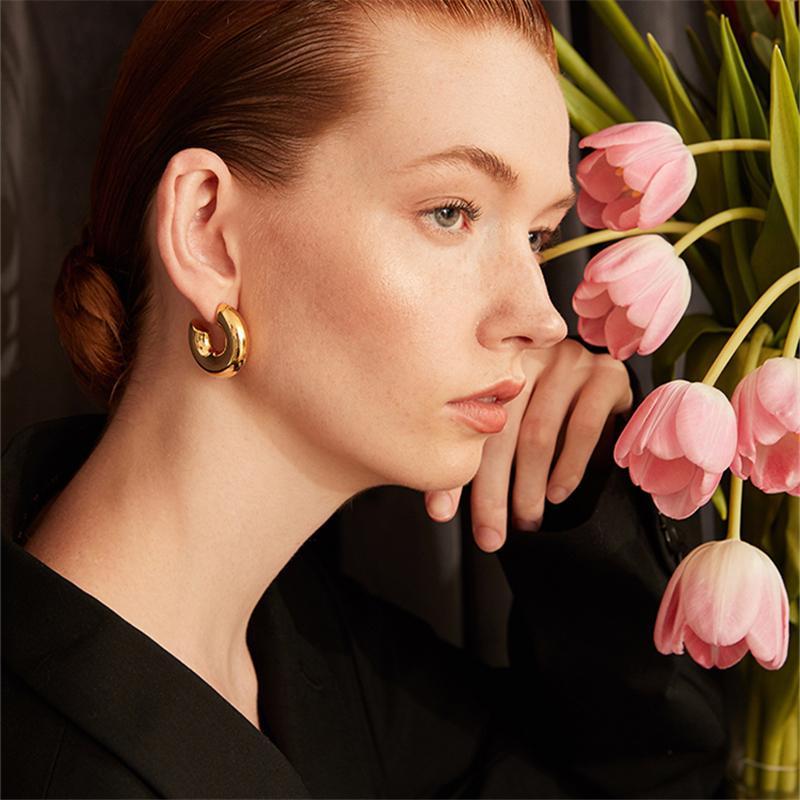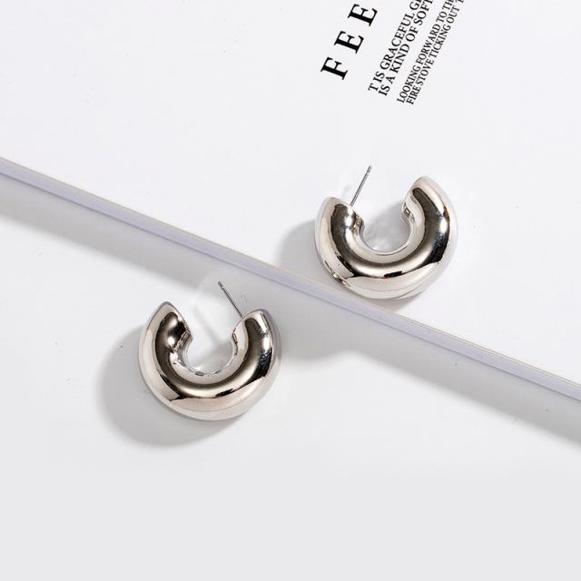 Новые геометрические простые минималистичные круглые золотые серебряные толстые металлические серьги-кольца для женщин ювелирные изделия шириной 1 см