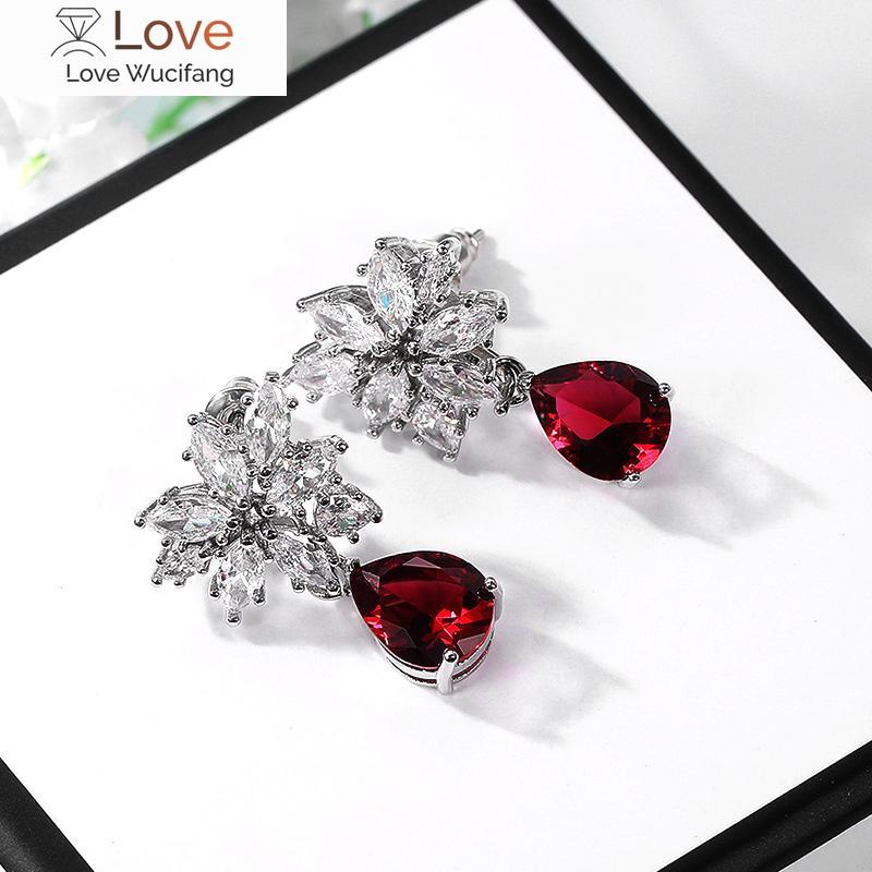 Элегантные женские серьги-подвески Huitan для танцевальной вечеринки с кристаллами и красными фианитами, женские серьги на годовщину свадьбы, модные ювелирные изделия