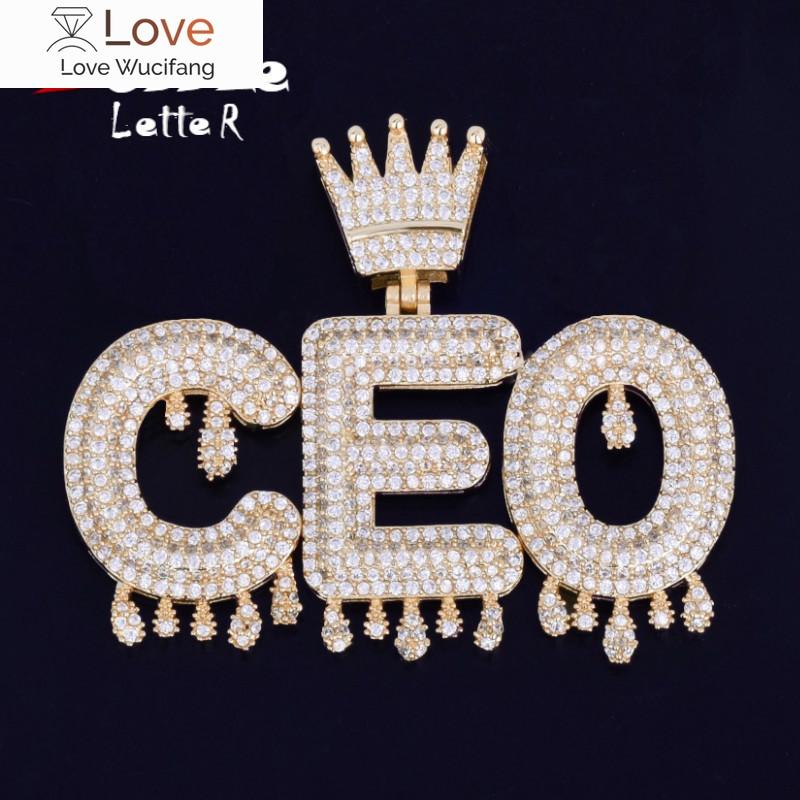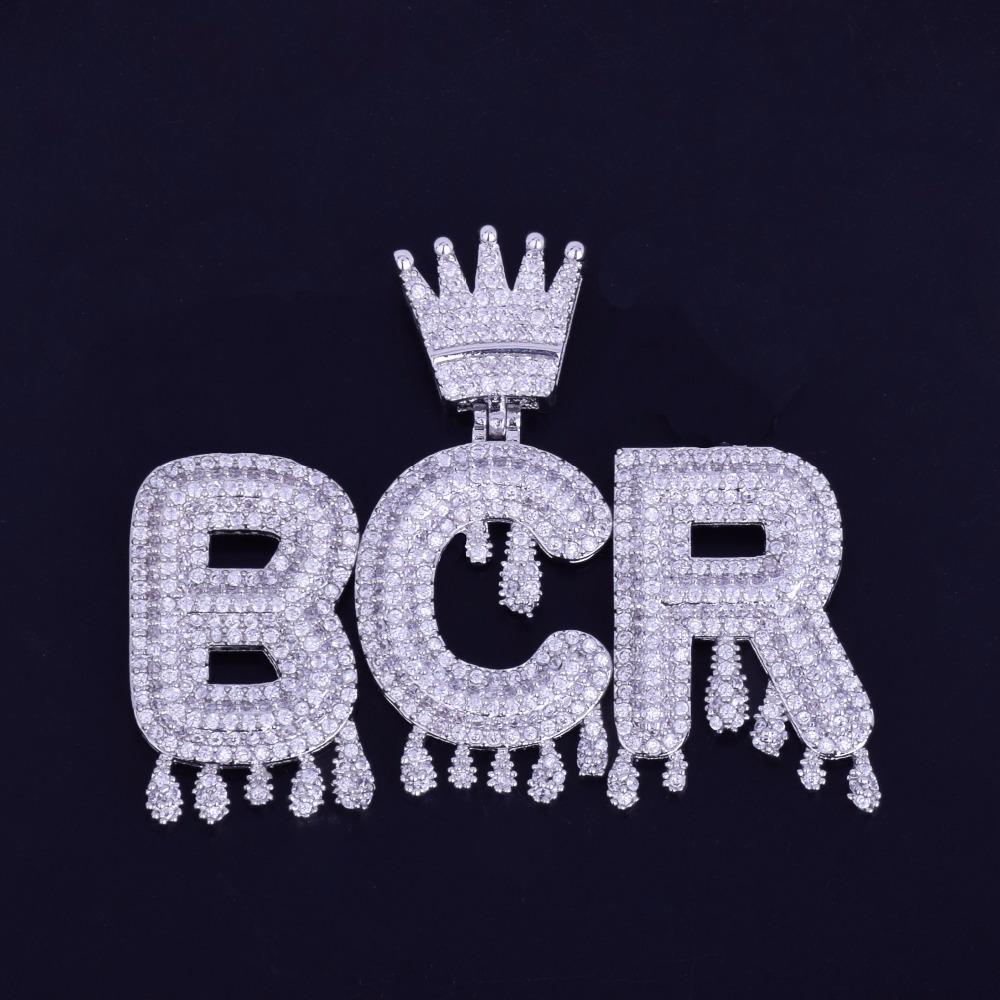 Пузыристые буквы пользовательское имя ожерелье для мужчин персонализированный кулон корона капающие подвески кубический циркон хип-хоп ювелирные изделия Iced Out