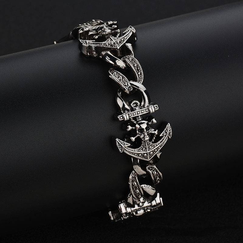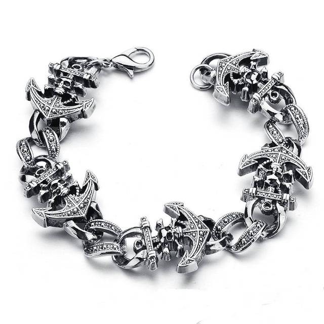 Danlery Cool Vintage Fashion Chain Trend Jewelry Skull Boat Anchor Bracelet Punk Style Bracelet For Men