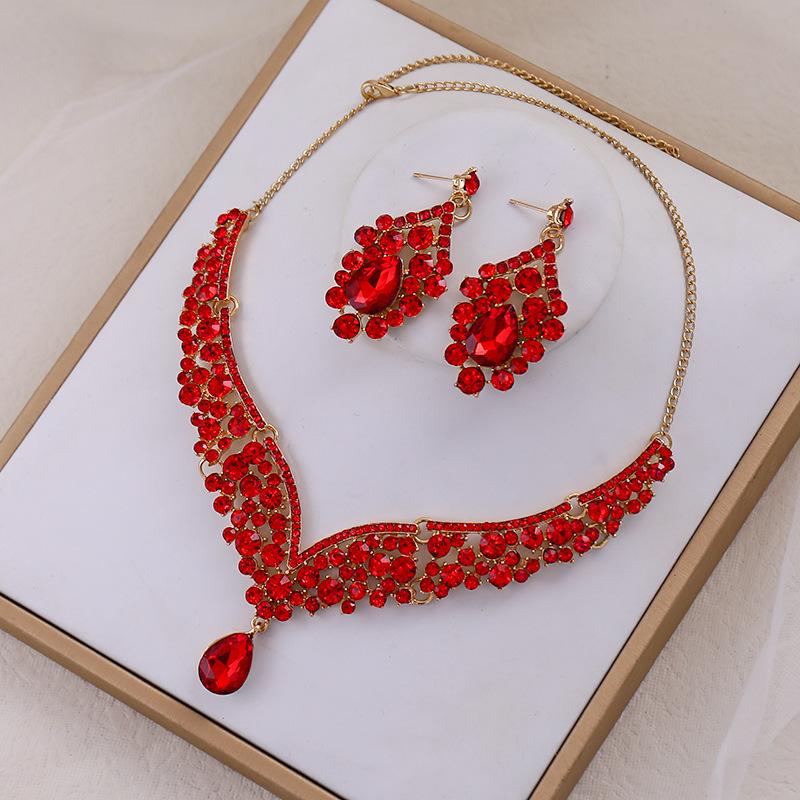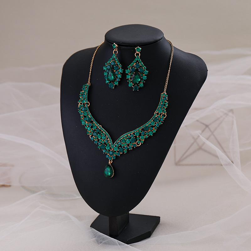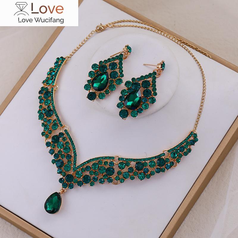 Свадебное зеленое хрустальное ожерелье, серьги, корона, аксессуары, стразы, разноцветное ожерелье, комплект сережек, свадебные аксессуары, ожерелья