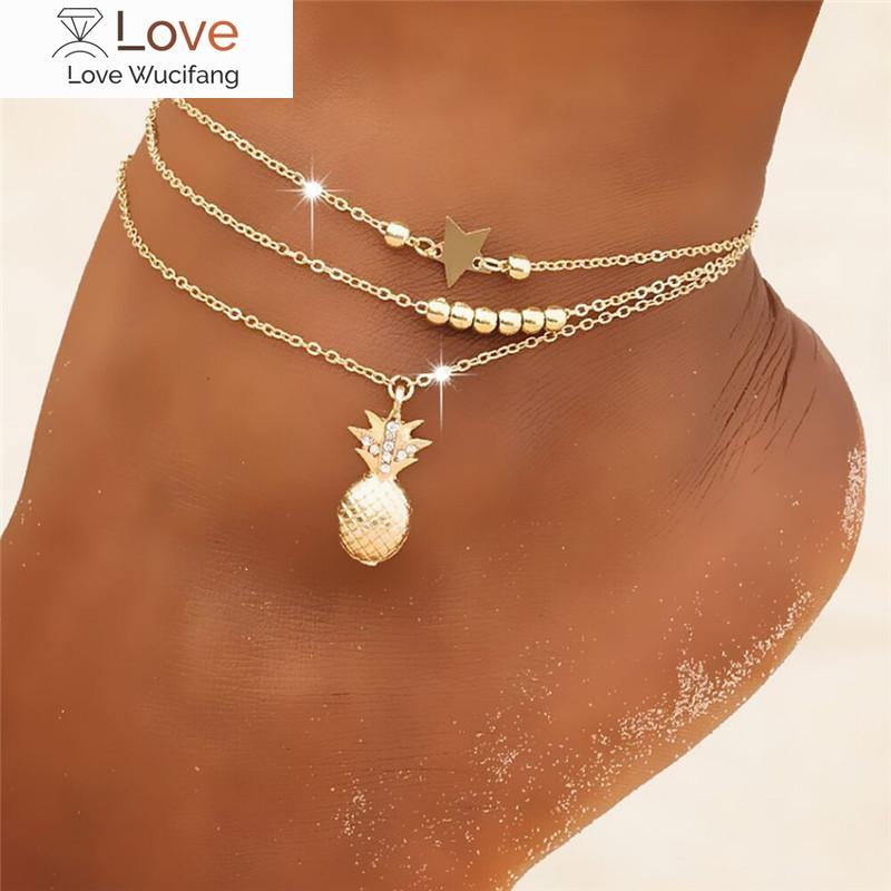Летняя мода кристальные ананасы ножные браслеты женские босые сандалии крючком украшения для ног браслеты на лодыжку из бисера для женщин цепочка на ногу