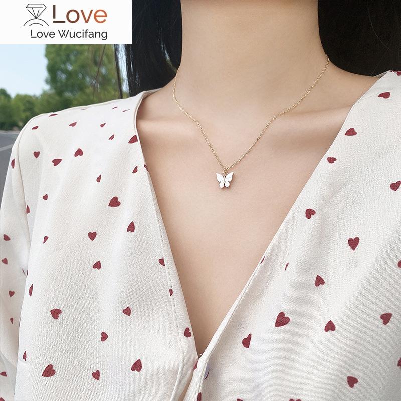 Корейское простое ожерелье с бабочкой из ракушек, женское темпераментное украшение с подвеской на ключицу
