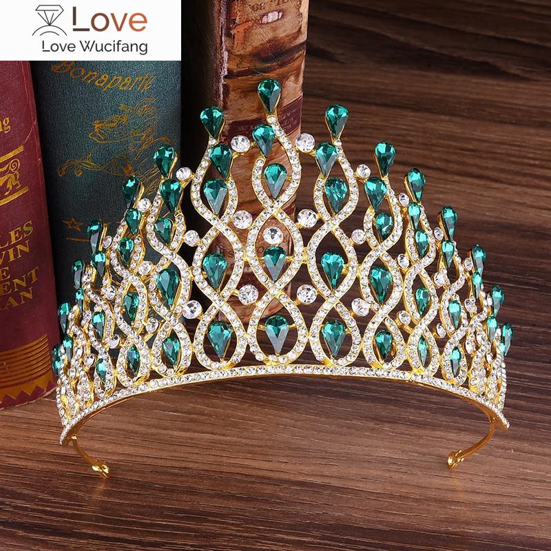 Огромные высокие европейские зеленые, красные, синие хрустальные диадемы, винтажные золотые стразы, пышные короны в стиле барокко, женские свадебные аксессуары для волос — купить товар онлайн с бесплатной доставкой по всему миру!