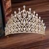 Огромные высокие европейские зеленые, красные, синие хрустальные диадемы, винтажные золотые стразы, пышные короны в стиле барокко, женские свадебные аксессуары для волос