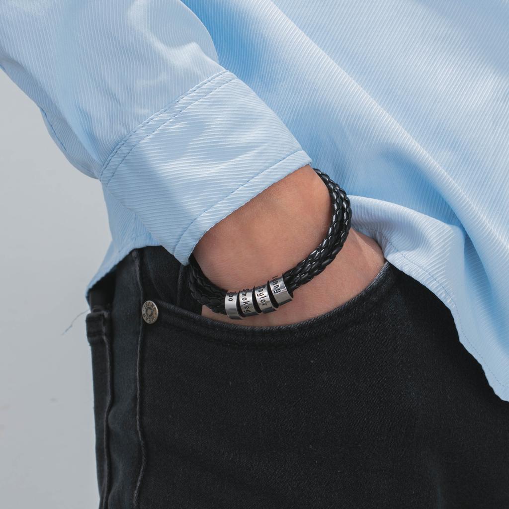 Гравированные браслеты, черные многооборотные браслеты, персонализированные 4 имени, индивидуальный изысканный плетеный шнур из бисера, подарок для мужчин