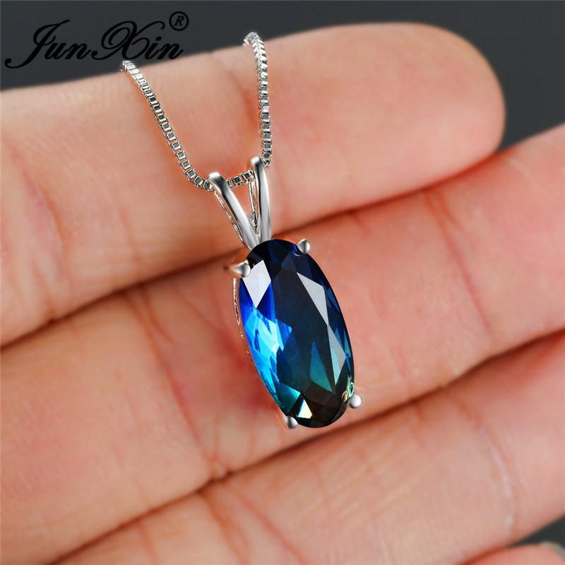 Mystic Rainbow Fire Crystal Big Oval Stone Подвеска Ключица Ожерелья Для Женщин Белое Золото Синий Зеленый Розовый Циркон Свадебное Чокер