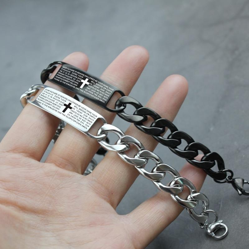 Браслеты мужские минималистичные титановые стальные браслеты библейский крест браслет из нержавеющей стали Tide мужские на руку
