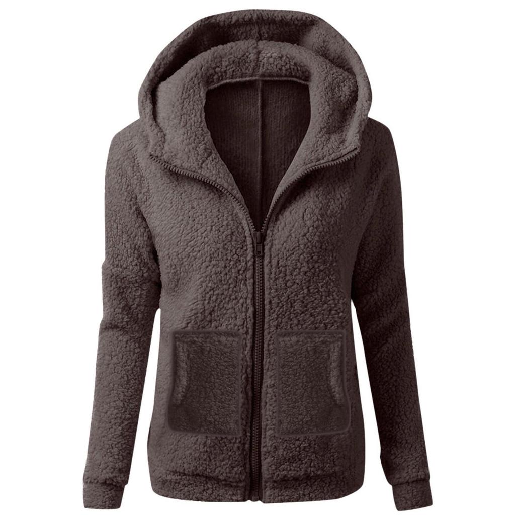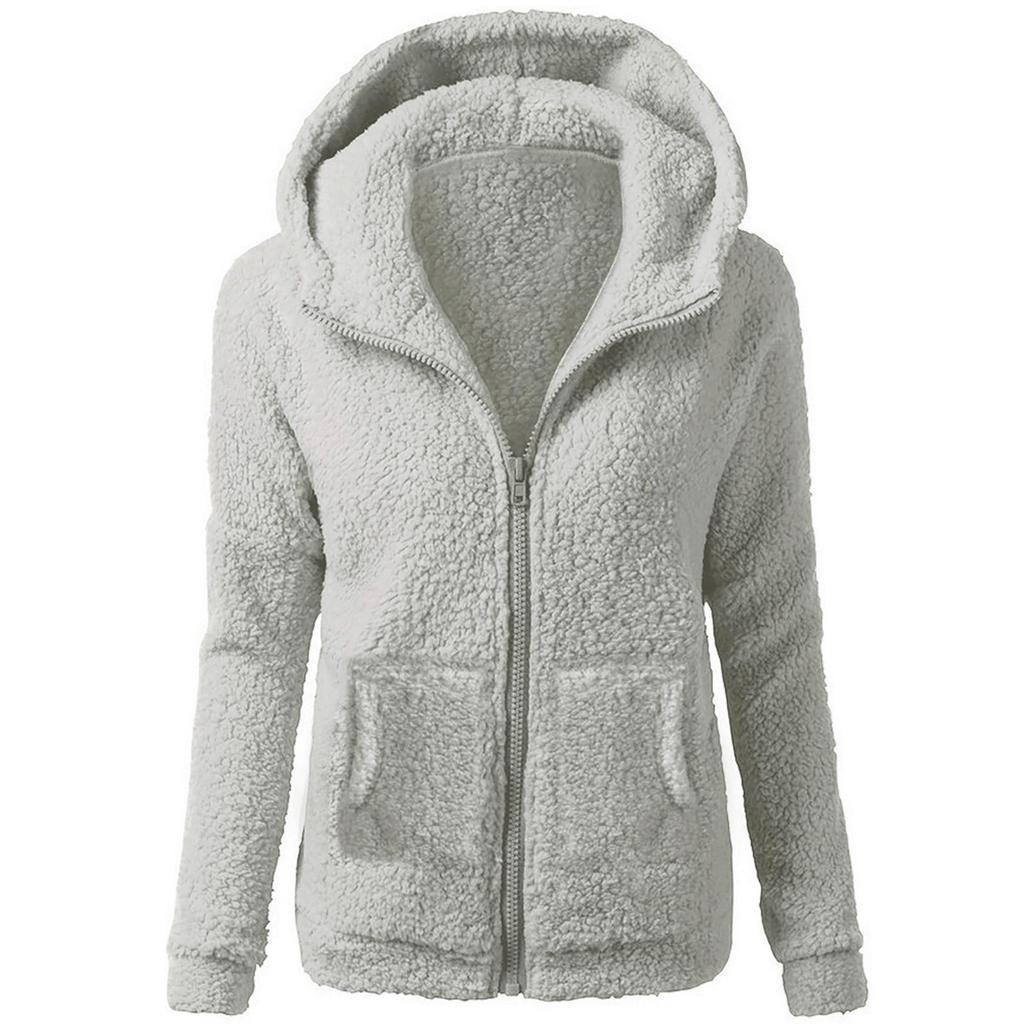 Женская мода, однотонная толстовка, свободная плюшевая куртка с капюшоном на молнии, топ