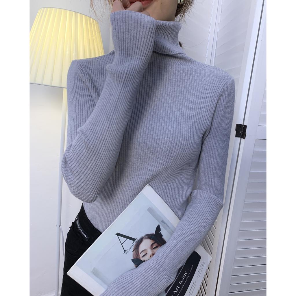 Женский осенний пуловер с высоким воротником и длинными рукавами, приталенный крой, простой однотонный однотонный цвет, рубашка с верхним низом, женский вязаный свитер