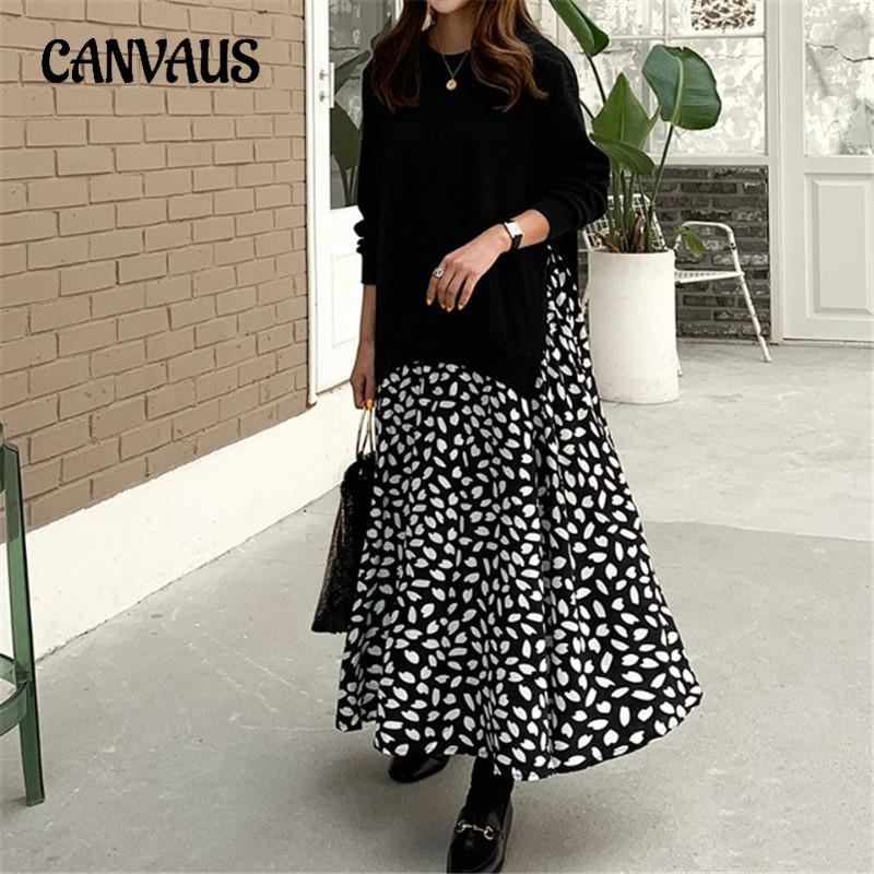 Весна и осень плюс размер футболка с длинным рукавом с принтом большое свободное платье с круглым вырезом длинное платье