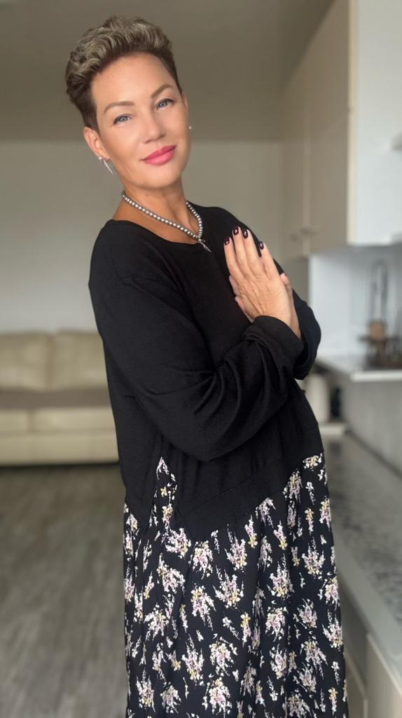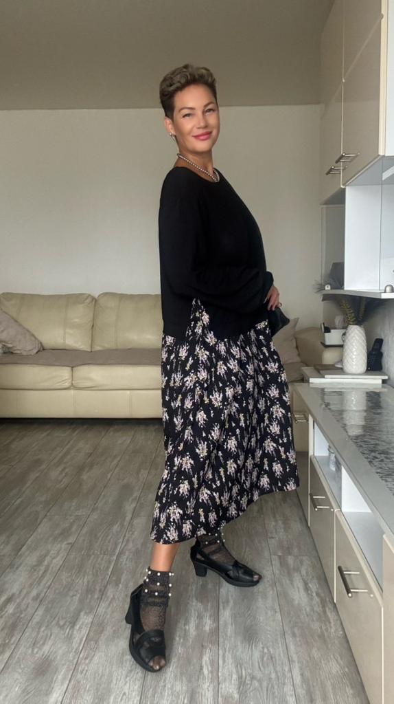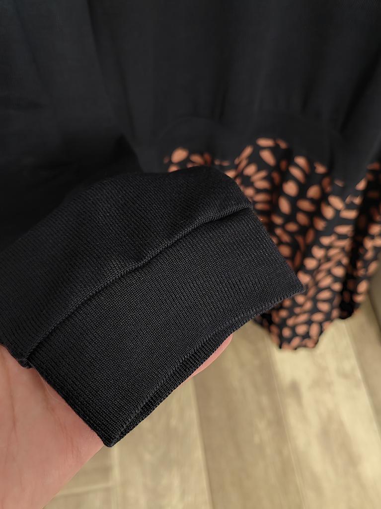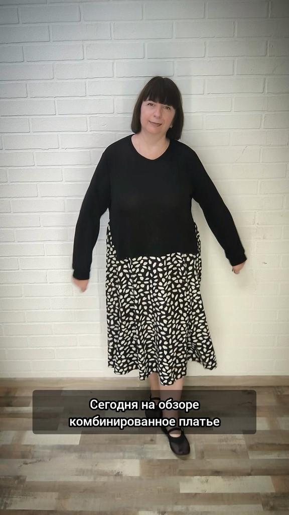 Платье интересного дизайна Из магазина CANVAUS на Джум У продавца модель представлена в четырех цветовых решениях и размерной линейке до 5хл. Я выбрала первый вариант в максимальном размере. Модель соответствует промо фото продавца. Платье выполнено из двух видов тканей: верх из черного трикотажа, низ из шелковистого полиэстера с принтом. Состав ткани 100% полиэстер. Горловина округлая, не тугая, обработана хорошо. Верхний трикотаж тонкий, отлично тянется, немного «светит». Нижняя часть А-силуэта. Рукава не узкие, хорошей длины. По краю имеют манжет из той же трикотажной ткани, манжеты также не тугие. Длина платья ниже колена. Замеры изделия в размере 5хл без растяжения: Обхват груди 120см Плечи 45см Обхват бедер 146см Длина рукава 57см Обхват манжета по краю рукава 22см Длина изделия 104см На мои параметры 104-94-114/170 платье очень велико. Надо было брать на пару размеров меньше. Пошив хороший. Если нравится модель и не смущает полиэстер в составе, могу рекомендовать. Видео можно посмотреть в обзоре. Приятных вам покупок, дорогие мои ❤ Всем добра))) Ваша OptiMist_i_ka #джум #платье #рекомендую #OptiMist_i_ka