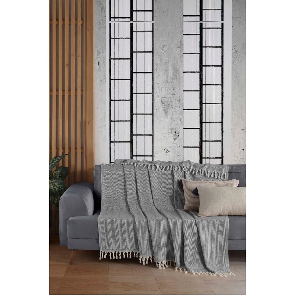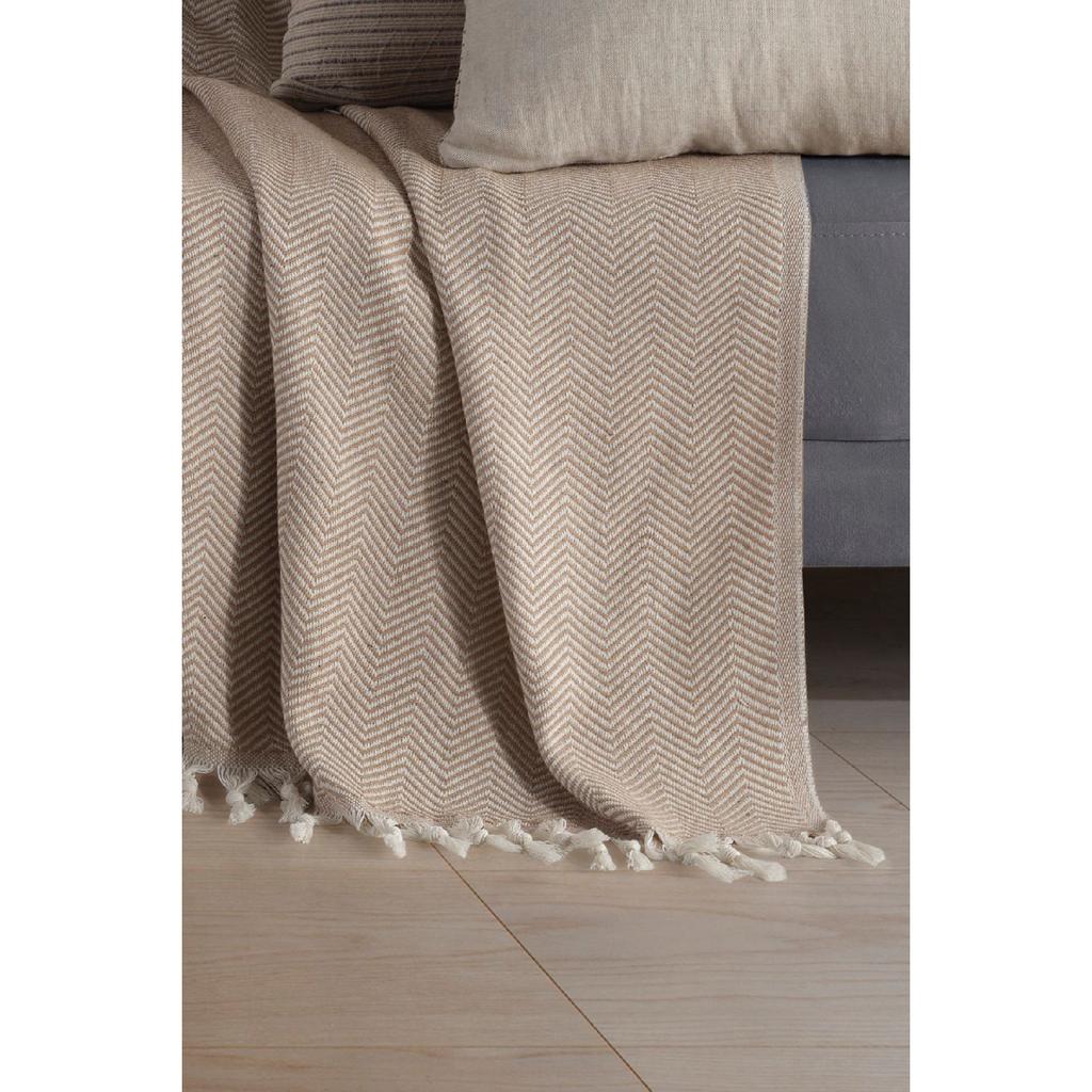 Чехол на диван натурального цвета экрю | Диванная шаль 180х210 Хлопок