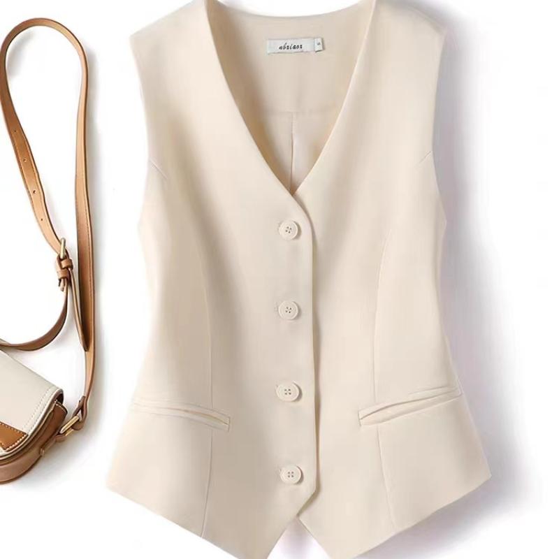 V-образный вырез жилет женский тонкий свободный жилет однобортный безрукавный блейзер женский тонкий короткий жилет Femme Slim Buttons