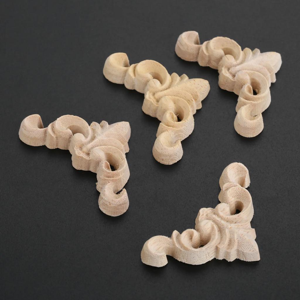4 шт или 1 шт 4 см резьба по дереву угловая наклейка неокрашенная резная деревянная накладка аппликация рамка мебель дверца шкафа стиль