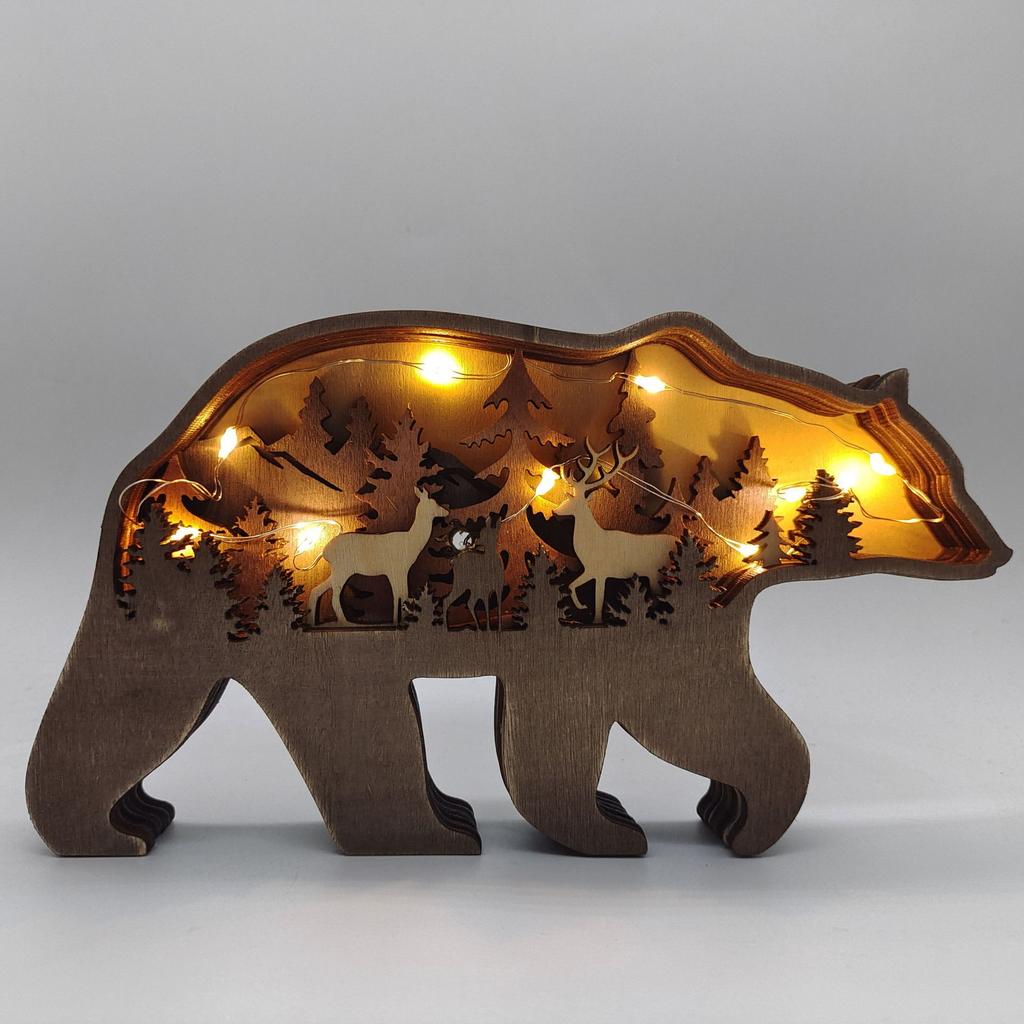 Новый DIY Деревянный Олень Бурый Медведь Украшение Украшения Дома Деревянный Бурый Медведь Светильник Поделки Украшение Декор Рождественский Подарок Поделки
