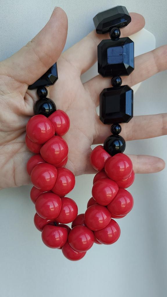 Когда увидела это ожерелье, ну прямо очень захотелось его купить, хотя раньше таким стилем я не увлекалась. Ожерелье очень красивое, необычный дизайн, соединение чёрного с красным придают особую изысканность, довольно тяжёлое. Опять же можно и в пир, и в мир, и в добрые люди. Изготовлено хорошо, без косяков. Заказывала 2 украшения, пришли в одной посылке. Всем довольна. Огромное спасибо!