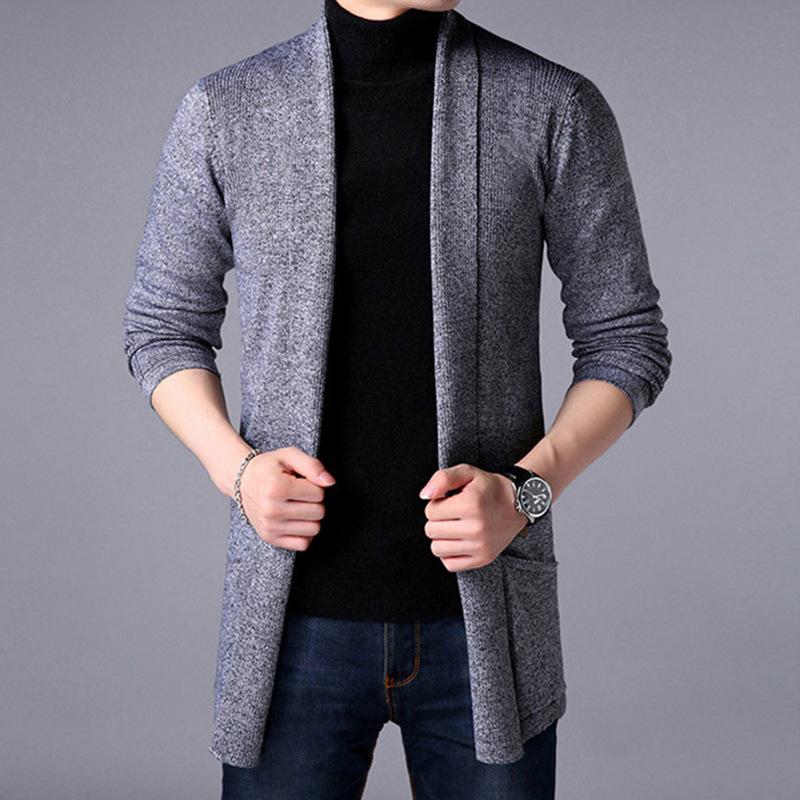 Danmo Fashion Мужской повседневный свитер кардиган осень тонкий длинный однотонный мужской трикотажный пальто большого размера