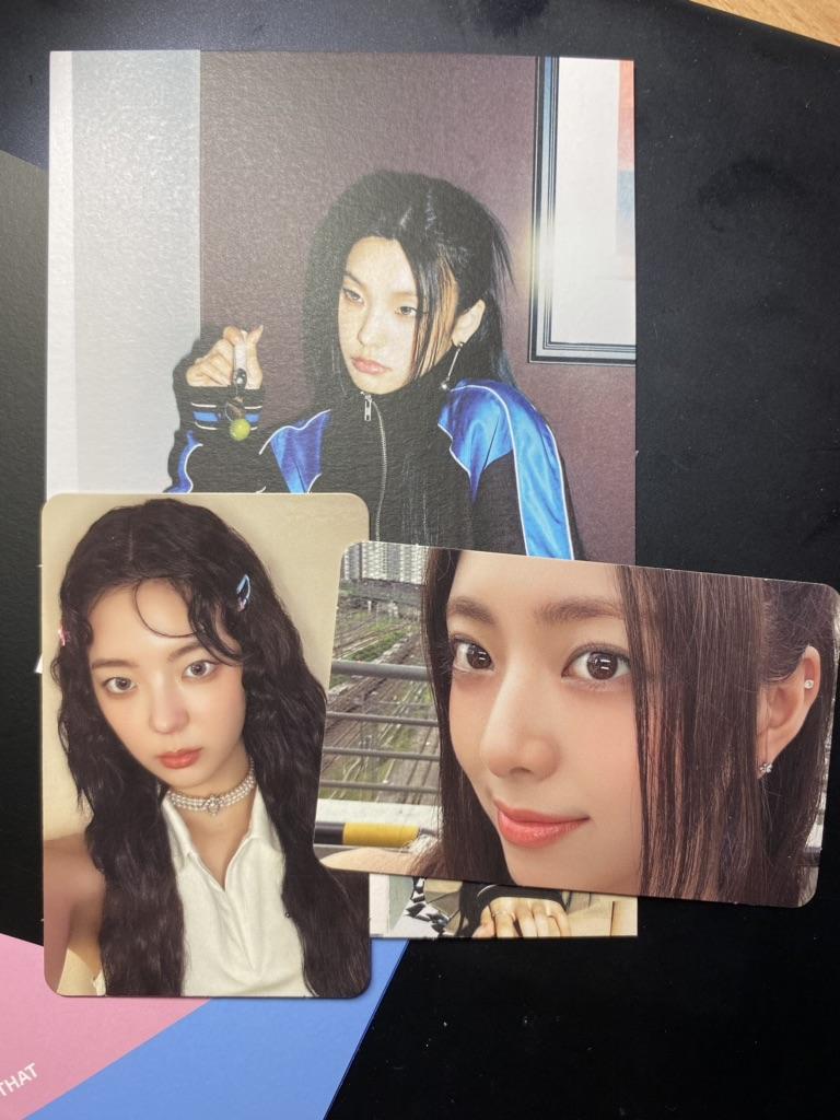 прекрасный альбом) фотобук очень красивый и наполнение хорошее выпали мои биаски 😭🥹 (лиа, чёрен) стеньте итзи стеньте богинь 🤎 спустя неделю не распался (как было с борн ту би) обожаю этот альбом и наполнение 🤎