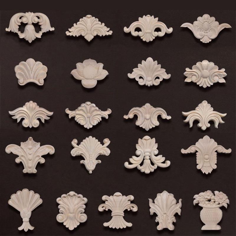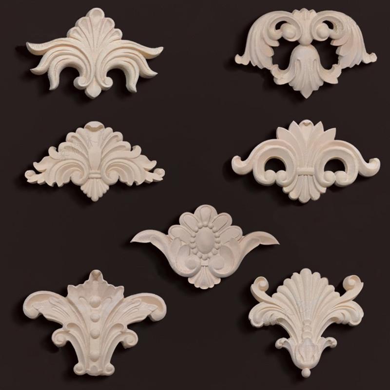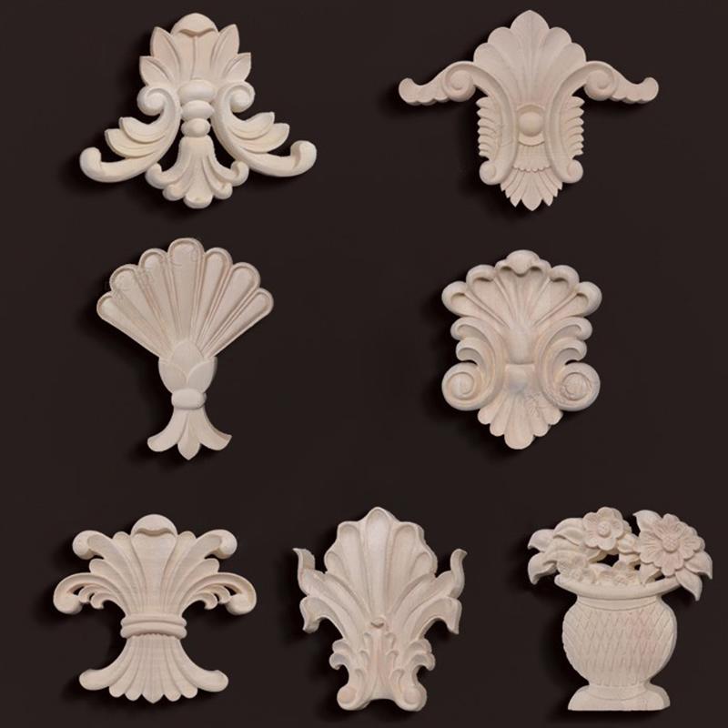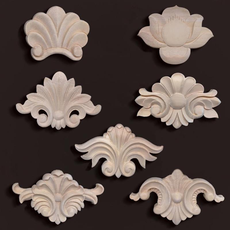 Неокрашенная деревянная резная наклейка угловая накладка Деревянное украшение Цветочные мотивы для мебели Восточные изгибы Аппликации Домашний декор Деревянные фигурки