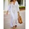 Tooxika 2024 Осень Новое повседневное свободное платье-рубашка с V-образным вырезом большого размера с длинными рукавами из хлопка и льна — купить товар онлайн с бесплатной доставкой по всему миру!
