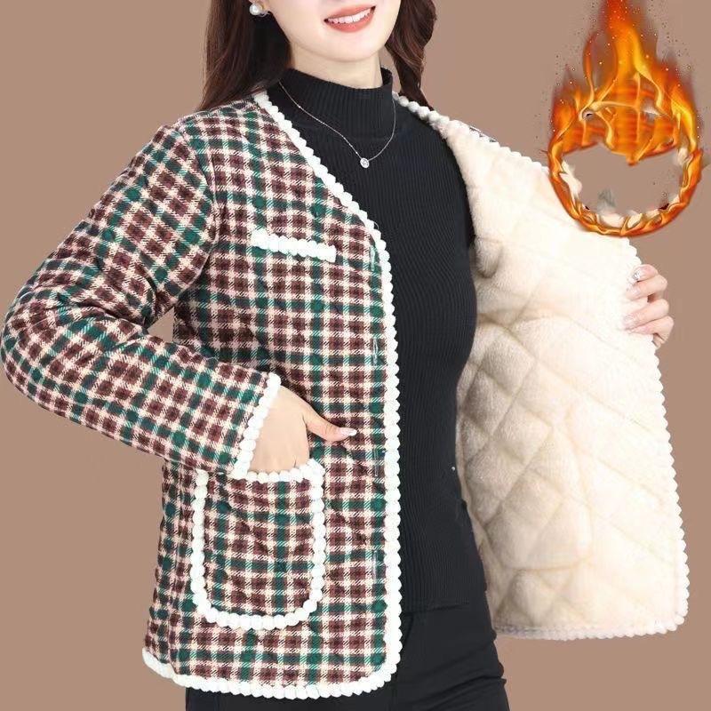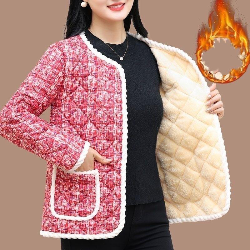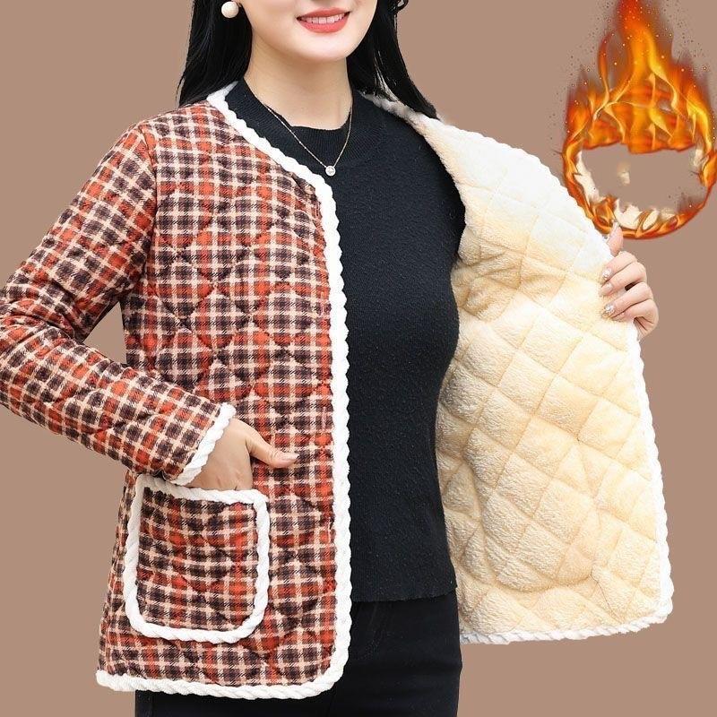 Женская зимняя короткая теплая куртка в стиле ретро с подкладкой из утепленной ткани и длинными рукавами. Кардиган.