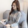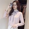 Весенняя новая корейская версия, тонкая шифоновая рубашка большого размера, женская рубашка с воротником-стойкой, тонкая бретелька, шифоновая рубашка с длинными рукавами