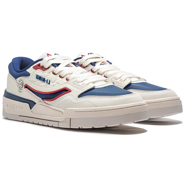 Li Ning 001 Btc Premium Simple Versatile Shock Absorbing Non-Slip Wear Resistance Low Top Casual Shoes Men sneakers White Blue AGCT495-2