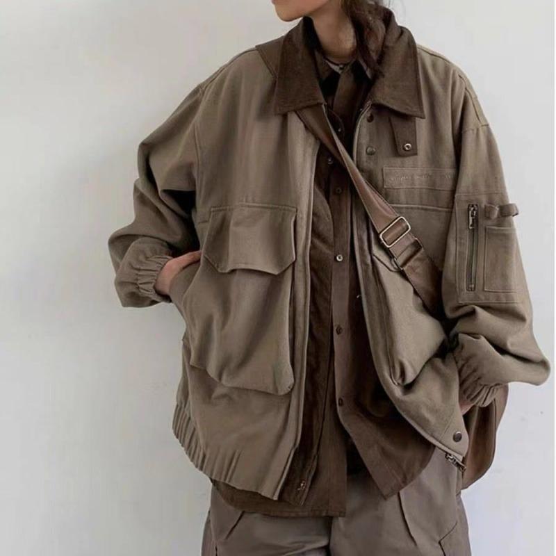 Весенне-осенняя японская ретро-универсальная рабочая куртка для мужчин и женщин, свободная посадка, большой карман пилота, куртка в стиле Waste Earth