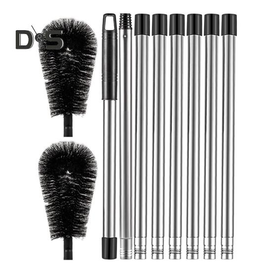 Гибкий охват: Наслаждайтесь эффективной уборкой с удобного расстояния с помощью выдвижной алюминиевой штанги этой щетки для чистки желобов.. Легко очищайте водостоки, крыши и многое другое без усилий и снижения эффективности.