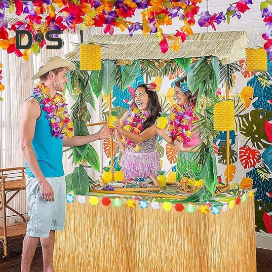 Надежный материал: Изготовленная из высококачественного пластика, наша гавайская юбка для стола водонепроницаемая, прочная, плотная и легкая.. Это гарантирует долговечность и возможность повторного использования для различных мероприятий в гавайском стиле, предлагая доступное и экологичное решение для украшения вечеринок.