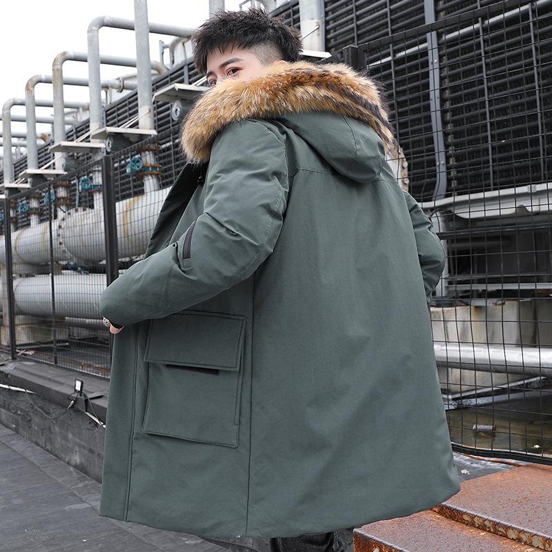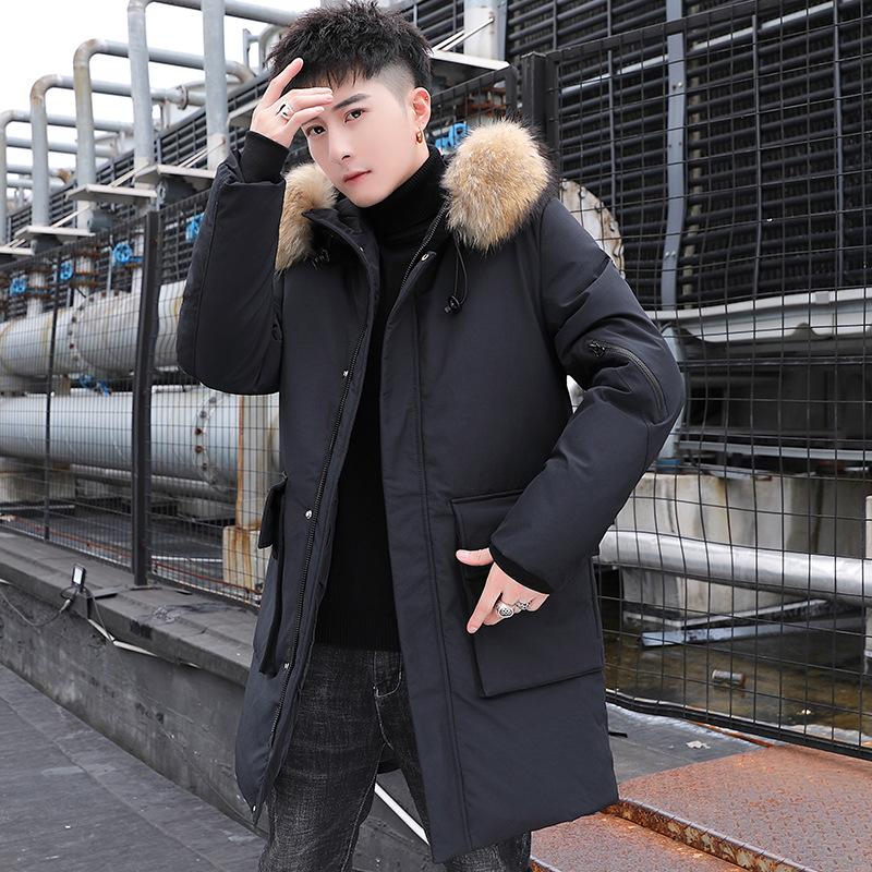 Утепленная мужская зимняя куртка средней и длинной длины в корейском стиле с пуховой подкладкой, молодежная трендовая зимняя утепленная куртка