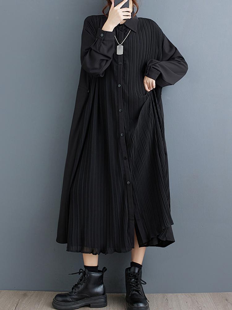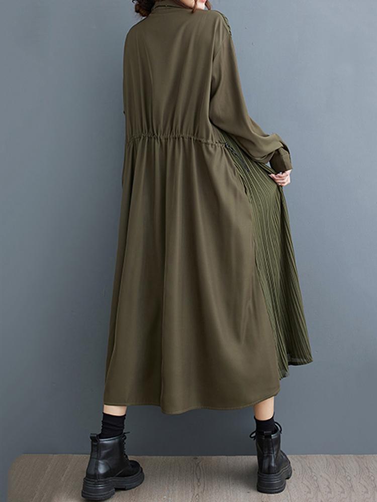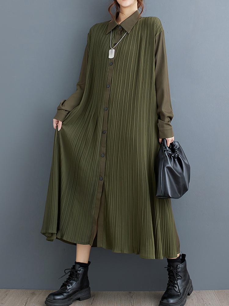 Xitao Платье А-силуэта с длинными рукавами, однотонное, в стиле пэчворк, плиссированное ZY8905