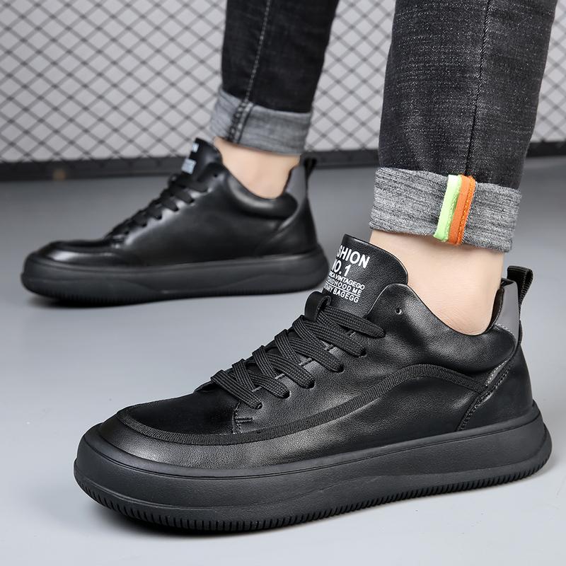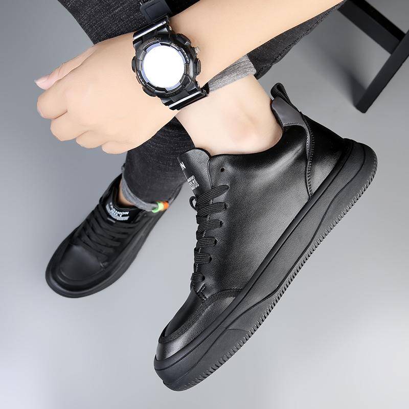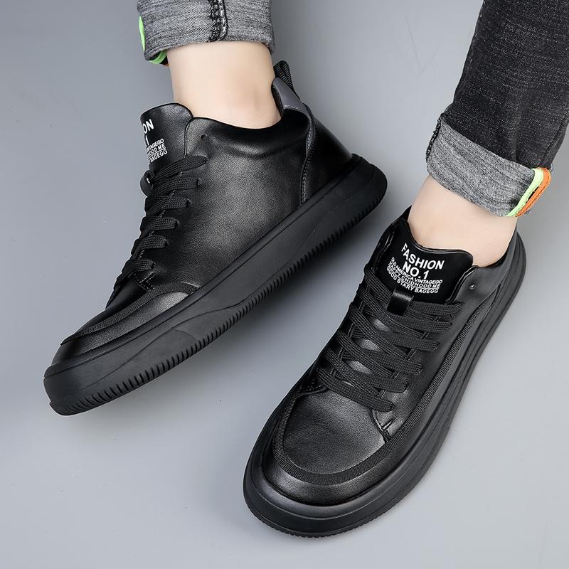 Мужские хлопковые туфли на шнуровке из мягкой кожи черного цвета, туфли средней высоты, мужские повседневные туфли, кожаные мужские туфли, мужские плюшевые кроссовки