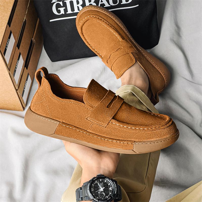 Мокасины мужские лоферы слипоны высокого качества коровья замша кожаная обувь мужские балетки уличные легкие туфли для вождения мужская обувь