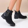 Зимние высококачественные женские сапоги, модные однотонные, с круглым носком, пряжкой, на низком каблуке, универсальные, с боковой молнией, женские короткие сапоги